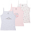 Майка для девочки на тонких бретелях. Модель приталенного покроя. Выполнена из эластичного х/б трикотажа кулирное полотно. Декорирована ярким принтом "птенчики; сердечки; цветочки". Отделка выреза и пройм из эластичного трикотажного канта в тон полотна. Низ изделия обработан швом вподгибку двойной строчкой.