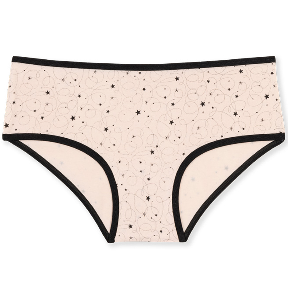 Трусы-слипы с принтом для девочки выполнены из мягкого и дышащего трикотажного полотна (кулирка). В поясе и проймах отделаны эластичным кантом в тон.