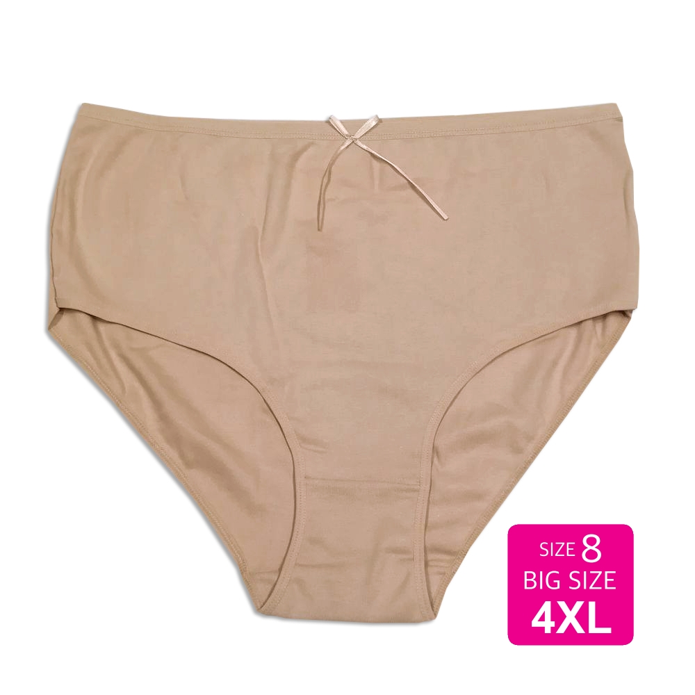 Трусы для женщины, бежевого цвета, из х/б трикотажа. В поясе на открытой резинке, в проймах отделаны эластичным, трикотажным кантом. Украшены атласным бантиком.