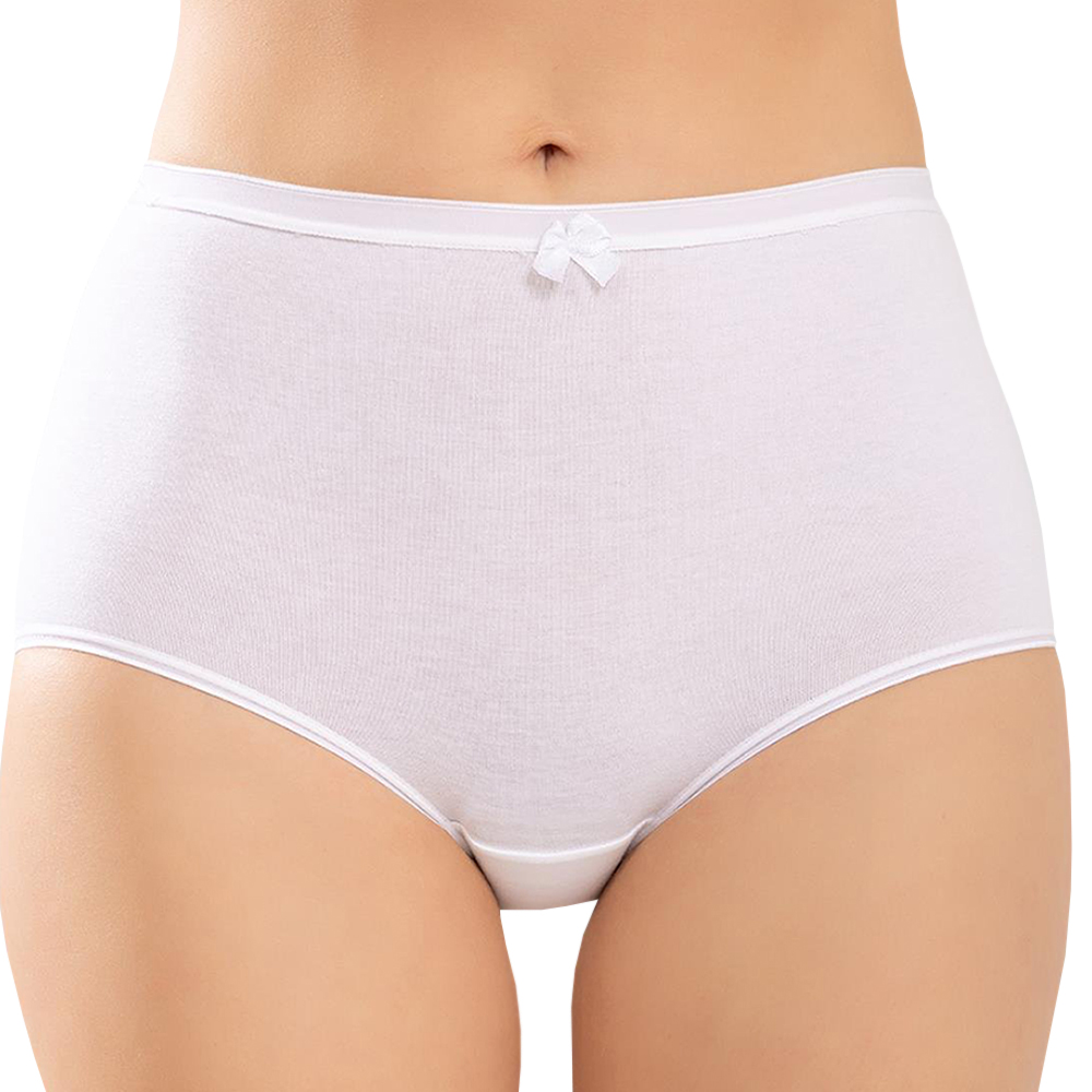 Трусы-макси для женщин с высокой посадкой. Выполнены из однотонного хлопкового трикотажа кулирное полотно. В поясе на открытой резинке, край резинки обработан оверлочной строчкой, украшены атласным бантиком. Удобная хлопковая ластовица. В проймах обработаны оверлочной строчкой с тонкой внутренней резинкой.