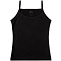 Майка для девочки на тонких бретелях. Выполнена из эластичного х/б трикотажа кулирное полотно. Модель полуприталенного силуэта в черном цвете. Вырез, бретели, проймы отделаны эластичным трикотажным кантом. Низ изделия обработан швом вподгибку двойной строчкой.