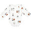 Боди с длинным втачным рукавом, выполнено из хлопкового трикотажа - интерлок. Изделие украшено нежным принтом "Зайки&мишки". Вырез горловины круглый, обработан трикотажным кантом из основного полотна. Модель на плечиках с запахом. Кнопки-застежки в паховой зоне снизу, между пройм. Внутренние швы.