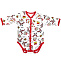 Боди из х/б трикотажа (интерлок). Ткань с праздничным принтом "Дедушка Мороз с маленьким помощником". Горловина, планка с застежкой, проймы отделаны трикотажным кантом контрастного цвета. Рукав длинный втачной. Застежка кнопки по центру, по всей длине и снизу, между пройм. В размере 56 рукав с варежкой антицарапкой. Наружные швы у размеров 56, 62,68.