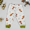 Брючки свободного кроя. Выполнены из мягкой и дышащей ткани – интерлок, с нежным принтом. Модель швами вовнутрь, в поясе на закрытой резинке. Низ брючин заканчивается манжетом из рибаны в зеленом цвете.
