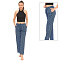 Штаны прямого кроя для женщин, выполнены из трикотажа (кулирное полотно) - 100% хлопок. Декорированы вертикальной черно-синей полоской. Пояс выполнен из основного полотна, с эластичной резинкой внутри. По поясу, с наружной стороны брюк вставлен плоский шнурок из основного материала. На передней половинке расположены два кармана с отрезным бочком. Низ изделия обработан швом вподгибку двойной строчкой.