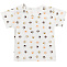 Футболка ясельная, изготовлена из мягкого, приятного для кожи кулирного полотна с невероятно нежной петельчатой изнанкой (100% хлопок). Декорирована кошачьим принтом «Следы лапок». Модель швами вовнутрь, прямого силуэта с втачным коротким рукавом. Вырез горловины круглый, обработан бейкой из эластичного полотна в тон. На плечике застежка на 2 пробивные кнопки, кроме размера 98. Низ изделия и рукавов подвернут и прострочен двойной строчкой.