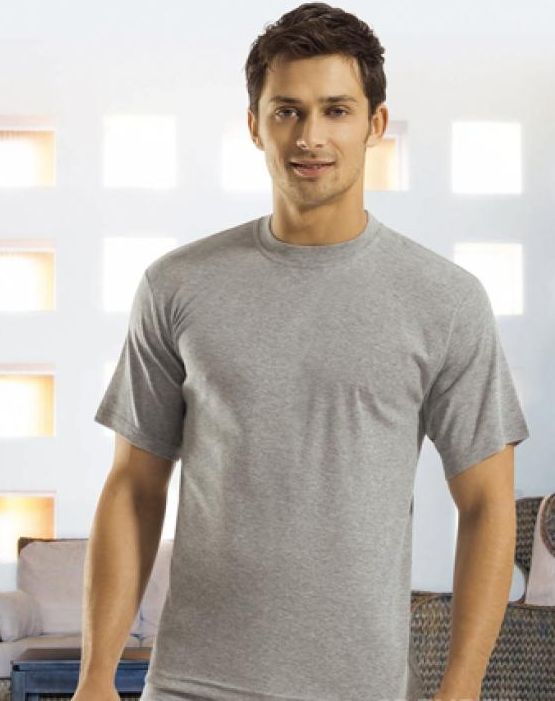 Футболка однотонная с короткими рукавами для мужчин из серого х/б трикотажа, рибана 100% хлопок. Без швов. Горловина обработана трикотажной манжетой.
