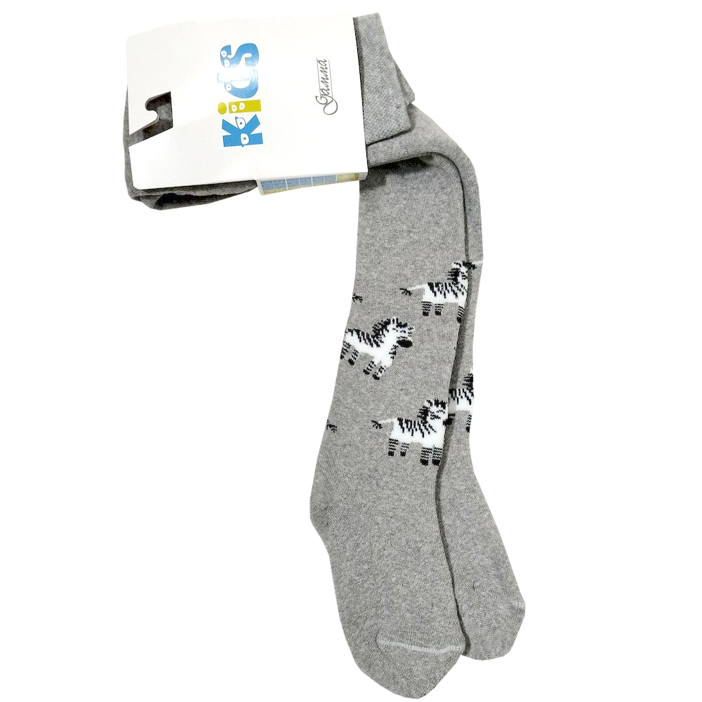 Утепленные колготки для детей из гладкого однотонного х/б трикотажа. С изнаночной стороны на махре. Нижняя часть изделия, украшена тканым рисунком "Зебры". В поясе на эластичной широкой резинке. Плоские швы. Модель с двумя швами сзади.