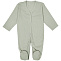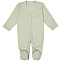 Комбинезон свободного кроя для новорожденных малышей. Модель с закрытыми носочками. Выполнен из мягкого фактурного трикотажного полотна (интерлок). Горловина, планка обработаны трикотажным кантом из основного полотна. Длинный втачной рукав, низ рукавов подвернут и прострочен двойной строчкой. Застёжка комбинезона выполнена в виде удобных кнопок по центру, по всей длине туловища, и по штанишкам. Штанишки с ластовицей. С лицевой стороны в боковом шве вшивной элемент.