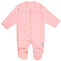 Комбинезон свободного кроя для новорожденных малышей. Декорирован принтом "мелкий горошек". Модель с закрытыми носочками. Выполнен из мягкого трикотажного полотна (интерлок). Горловина, планка обработаны трикотажным кантом из основного полотна. Длинный втачной рукав, низ рукавов подвернут и прострочен двойной строчкой. Застёжка комбинезона выполнена в виде удобных кнопок по центру, по всей длине туловища, и по штанишкам. Штанишки с ластовицей. С лицевой стороны в боковом шве вшивной элемент. У размера 56 рукав-реглан и низ рукавов закрыт варежками - антицарапками.