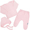Комплект для новорожденных, состоящий из распашонки, ползунков и чепчика. Выполнен из х/б трикотажа (интерлок). Распашонка с запахом. Рукав с варежкой антицарапкой. Застежка кнопки снаружи с левой стороны, изнутри с правой стороны. Наружные швы.