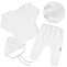 Комплект однотонный для новорожденных, состоящий из распашонки, ползунков и чепчика. Выполнен из перфорированного х/б трикотажа (интерлок). Распашонка с запахом. Рукав с варежкой антицарапкой. Застежка кнопки снаружи с левой стороны, изнутри с правой стороны. Наружные швы.