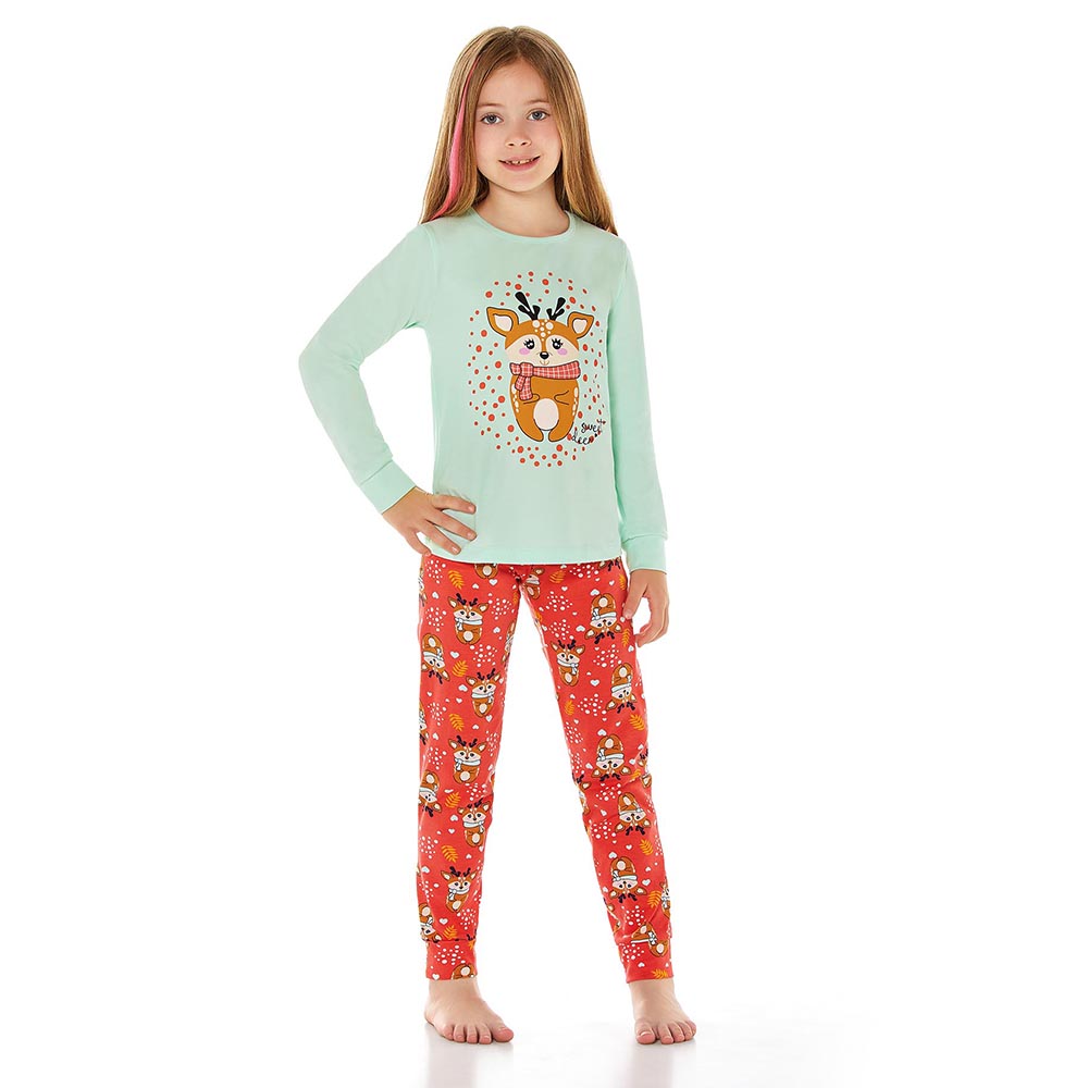 Пижама для девочек из эластичного х/б трикотажа (кулирное полотно), состоящая из джемпера и штанов.
