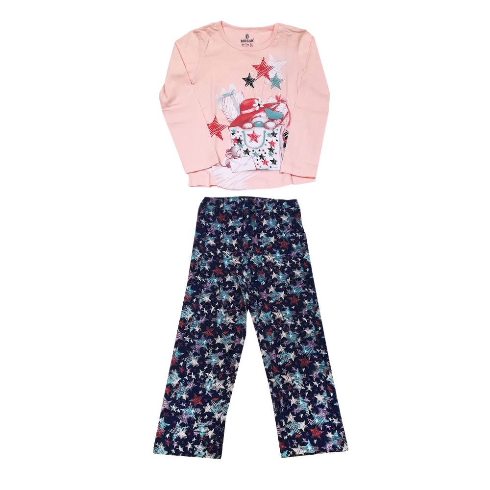 Брючки из трикотажа с рисунками "звездочки", прямого кроя, на закрытой резинке в поясе.