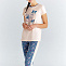 Футболка удлиненная, с красочным принтом, украшенным стразами. Расклешенный силуэт. Горловина отделана трикотажным кантом с рисунками.