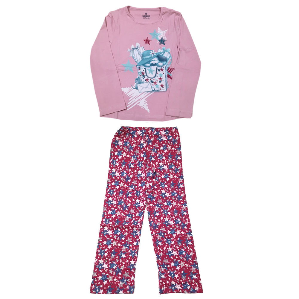 Брючки из трикотажа с рисунками "звездочки", прямого кроя, на закрытой резинке в поясе.