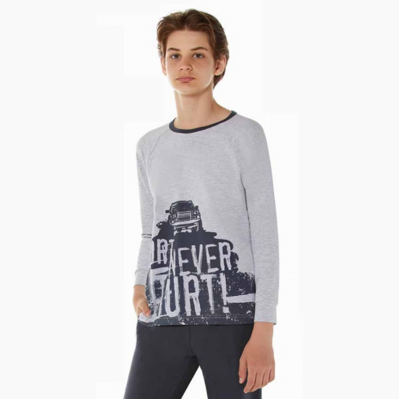 Джемпер со стильным принтом на груди. Горловина отделана трикотажным кантом. Рукав-реглан на манжете.