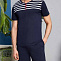 Футболка-поло с полоскамипринт "полосы" на груди. Горловина отделана трикотажным кантом.