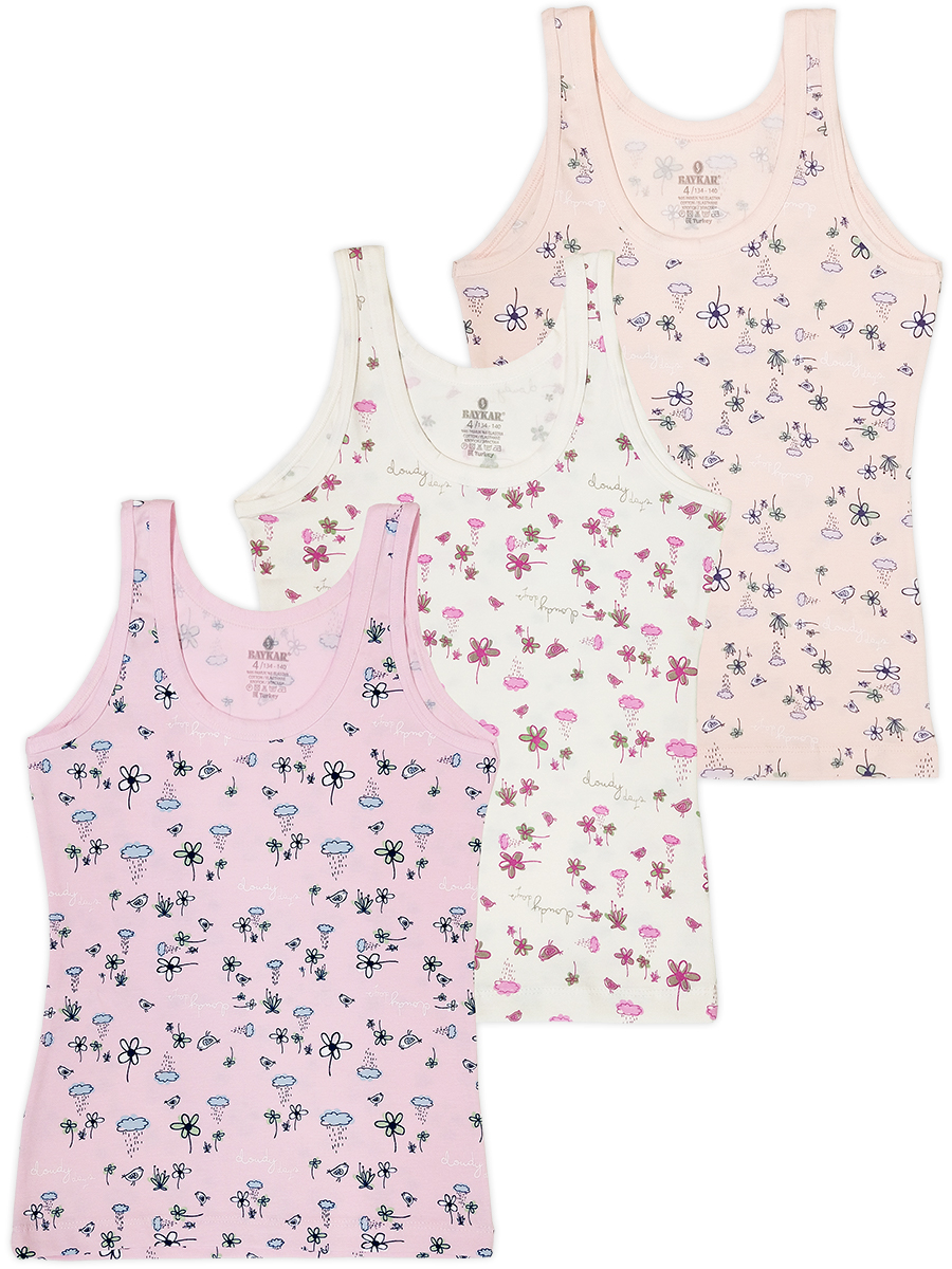 Маечка для девочки, из эластичного х/б трикотажа с принтом "цветы". Полуприлегающий силуэт. Широкие бретели отделаны эластичным трикотажным кантом.