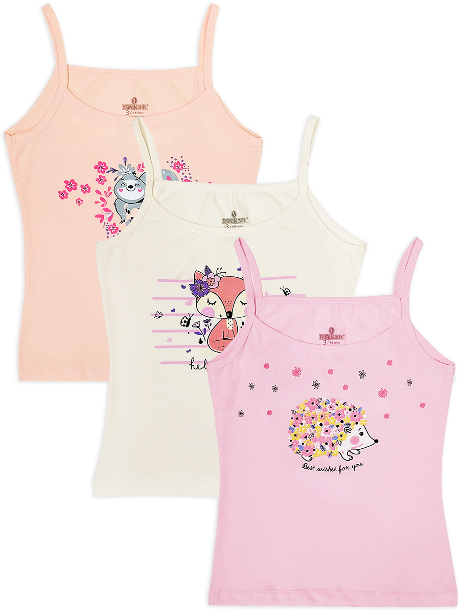 Маечка для девочки, из эластичного, х/б трикотажа, с красочным принтом "здравствуй, весна". Полуприлегающий силуэт. Тонкие бретели из эластичного трикотажа.
