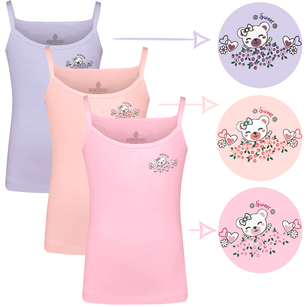 Майка для девочки, из эластичного х/б трикотажа, с принтом "мишки". Полуприлегающий силуэт. Тонкие бретели из эластичного трикотажа.