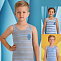 Майка для мальчика из эластичного х/б трикотажа в полоски с "эмблемой". Горловина и проймы отделаны трикотажным кантом.