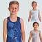 Майка для мальчика из эластичного х/ трикотажа с принтом "карта". Вырез, лямки и проймы отделаны трикотажным кантом.
