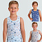 Майка для мальчика, из эластичного х/б трикотажа(95% хлопок, 5% эластан), с красочным рисунком "самолеты". Горловина и проймы отделаны трикотажным кантом.