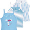Маечка для девочки, из эластичного х/б трикотажа с различными принтами: из трикотажа в горошек/ из трикотажа в полоску/ из однотонного трикотажа с принтом "кошечка с зонтиком". Полуприлегающий силуэт. Тонкие бретели из эластичного трикотажа.