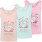 Майка для девочки из эластичного трикотажа, с принтом "кошечки супер- подружки". Полуприталенный силуэт. Широкие бретели отделаны эластичным трикотажным кантом. Вырез отделан кантом с фистончатым краем.