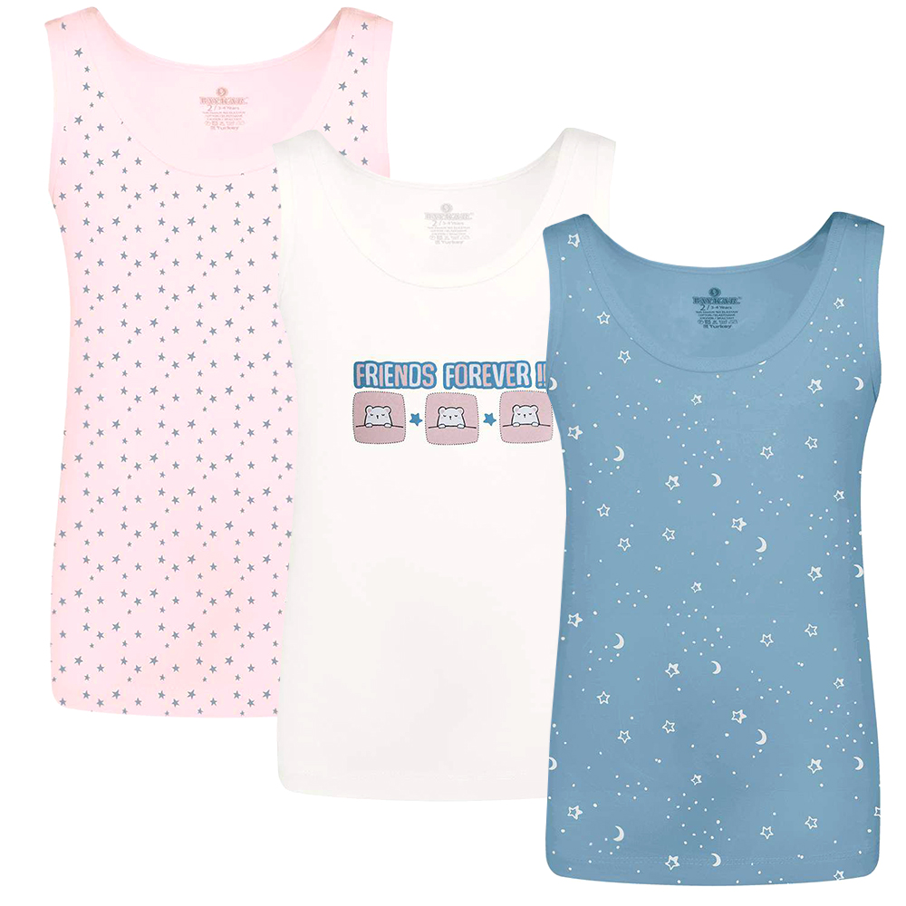 Майка для девочки из эластичного х/б трикотажа, с принтом "звездочки". Полуприлегающий силуэт. Широкие бретели отделаны эластичным трикотажным кантом.