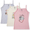 Майка для девочки на тонких бретелях. Модель приталенного покроя. Выполнена из эластичного х/б трикотажа кулирное полотно. Передняя половинка декорирована ярким принтом "котята". Отделка выреза и пройм из эластичного трикотажного канта в тон полотна. Низ изделия обработан швом вподгибку двойной строчкой.