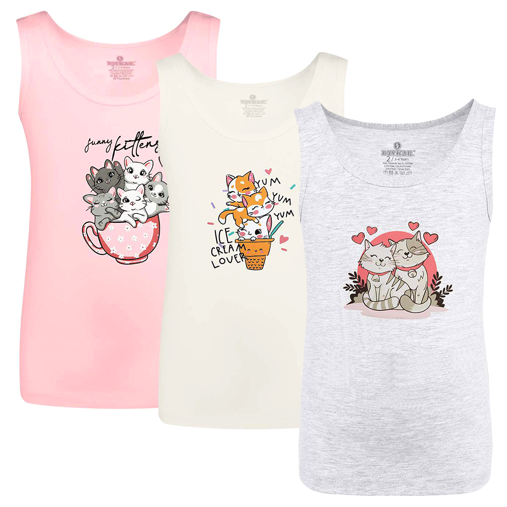 Майка для девочки из эластичного х/б трикотажа, с принтом "Котятя". Полуприлегающий силуэт. Широкие бретели отделаны эластичным трикотажным кантом.