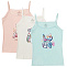 Майка для девочки на тонких бретелях. Модель приталенного покроя. Выполнена из хлопкового трикотажа кулирное полотно. Передняя половинка декорирована ярким принтом "Единорожек". Отделка выреза и пройм из эластичного трикотажного канта в тон полотна. Низ изделия подвернут и прострочен двойной строчкой.