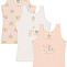 Майка для девочки на широких бретелях. Украшена принтом "Вигвам". Модель приталенного кроя. Выполнена из эластичного х/б трикотажа кулирное полотно. Отделка выреза и пройм эластичным трикотажным кантом в тон полотна. Низ изделия подвернут и прошит двойной строчкой.
