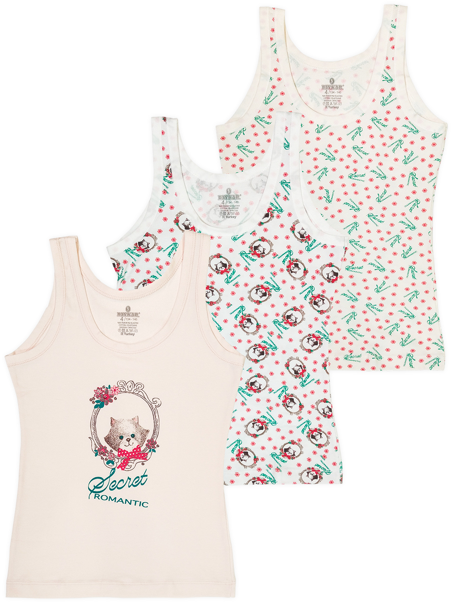 Маечка для девочки, из эластичного х/б трикотажа с принтом "романтик". Полуприлегающий силуэт. Широкие бретели отделаны эластичным трикотажным кантом.