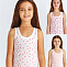 Майка для девочки на широких бретелях. Модель приталенного покроя. Выполнена из эластичного х/б трикотажа кулирное полотно. Декорирована милым принтом "Сердечки; Звёздочки". Отделка выреза и пройм из эластичного трикотажного канта в тон полотна. Низ изделия подвернут и прострочен двойной строчкой.