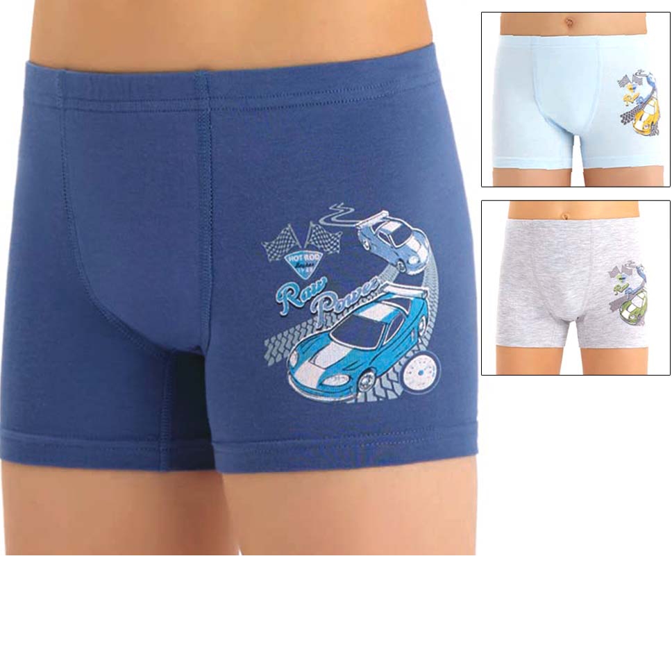 Трусы-боксеры для мальчика, из эластичного х/б трикотажа, с принтом "гонки". В поясе на закрытой резинке.
