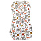 Пеленка-кокон из х/б трикотажа с красочным принтом "зайчики". Наружные швы. Горловина отделана трикотажным кантом. Застежка молния по центру, с предохранителем из трикотажа у горловины.