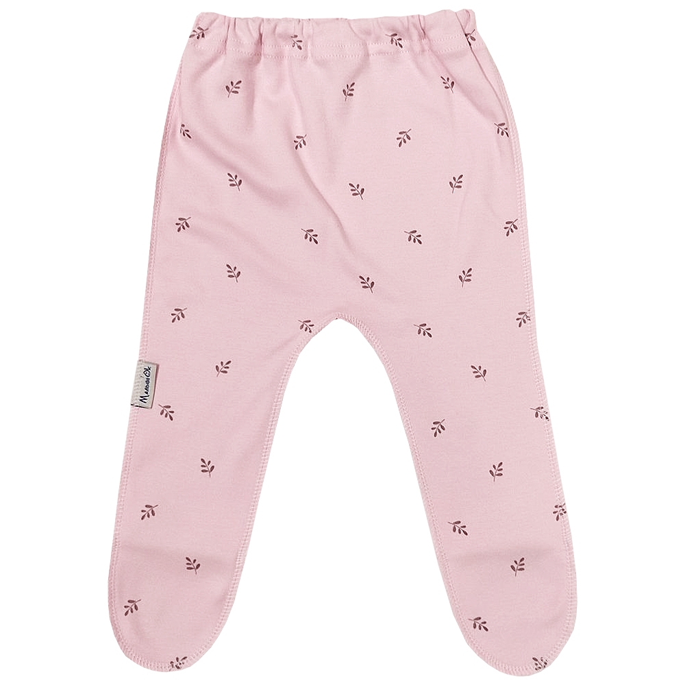 Ползунки свободного кроя для новорожденных малышек. Выполнены из мягкой, дышащей ткани интерлок (100% хлопок). Декорированы тропическим принтом "Веточка с листочками" по всей длине изделия. В поясе на закрытой резинке. Швы наружу. С лицевой стороны в боковом шве вшивной элемент.
