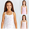 Маечка для девочки, из эластичного х/б трикотажа с принтом "котёнок в шляпке". Полуприлегающий силуэт. Тонкие бретели из эластичного трикотажа.