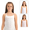 Майка для девочки из эластичного х/б трикотажа с цветочным рисунком. Полуприлегающий силуэт. Тонкие бретели. Вырез, бретели, проймы отделаны эластичным трикотажным кантом, вырез спереди с фистончатым краем. На груди полукруглая вставка из однотонного трикотажа.