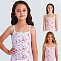 Майка для девочки из эластичного трикотажа с принтом "бабочки". Полуприлегающий силуэт. Тонкие бретели из эластичного трикотажа. Вырез, проймы отделаны эластичным трикотажным кантом.