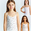 Маечка для девочки, из эластичного х/б трикотажа с принтом "птицы". Полуприлегающий силуэт. Тонкие бретели из эластичного трикотажа. Вырез, бретели отделаны декоративным швом.
