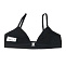 Топ черного цвета, на тонких бретельках из эластичной резинки, с треугольными чашками. Под грудью эластичная резинка. Застежка пластиковый крючок.