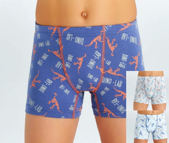Трусики-боксеры для мальчика, из эластичного х/б трикотажа, с надписями и рисунками "динозавры". В поясе на закрытой резинке.