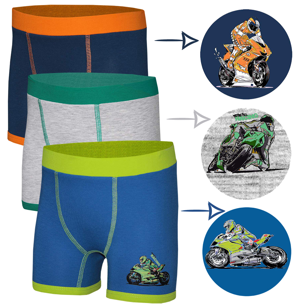 Трусы боксеры для мальчиков от бренда Baykar. Плотный и приятный к телу хлопковый трикотаж, довольно эластичный, удобен в носке. Боксеры с тканым поясом контрастного цвета, на мягкой комфортной резинке. Украшены небольшим принтом "Мото". На передней части - гульфик. Низ изделия окантованы трикотажным кантом из основного полотна контрастного цвета.