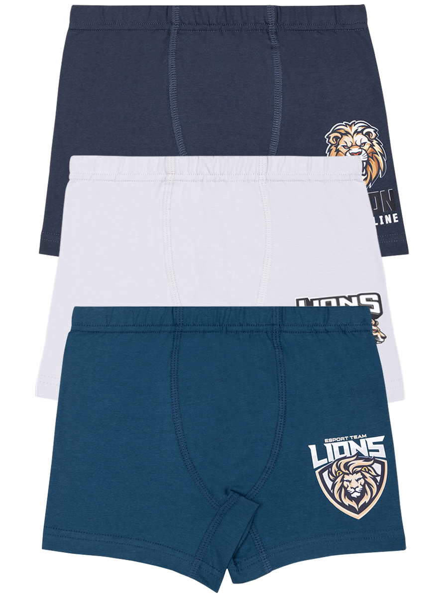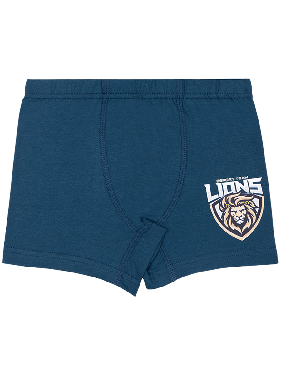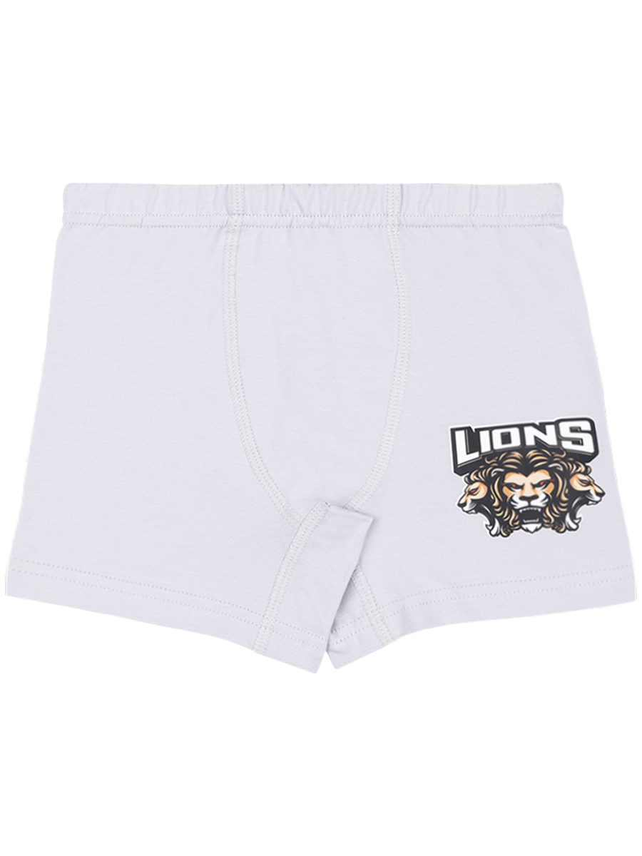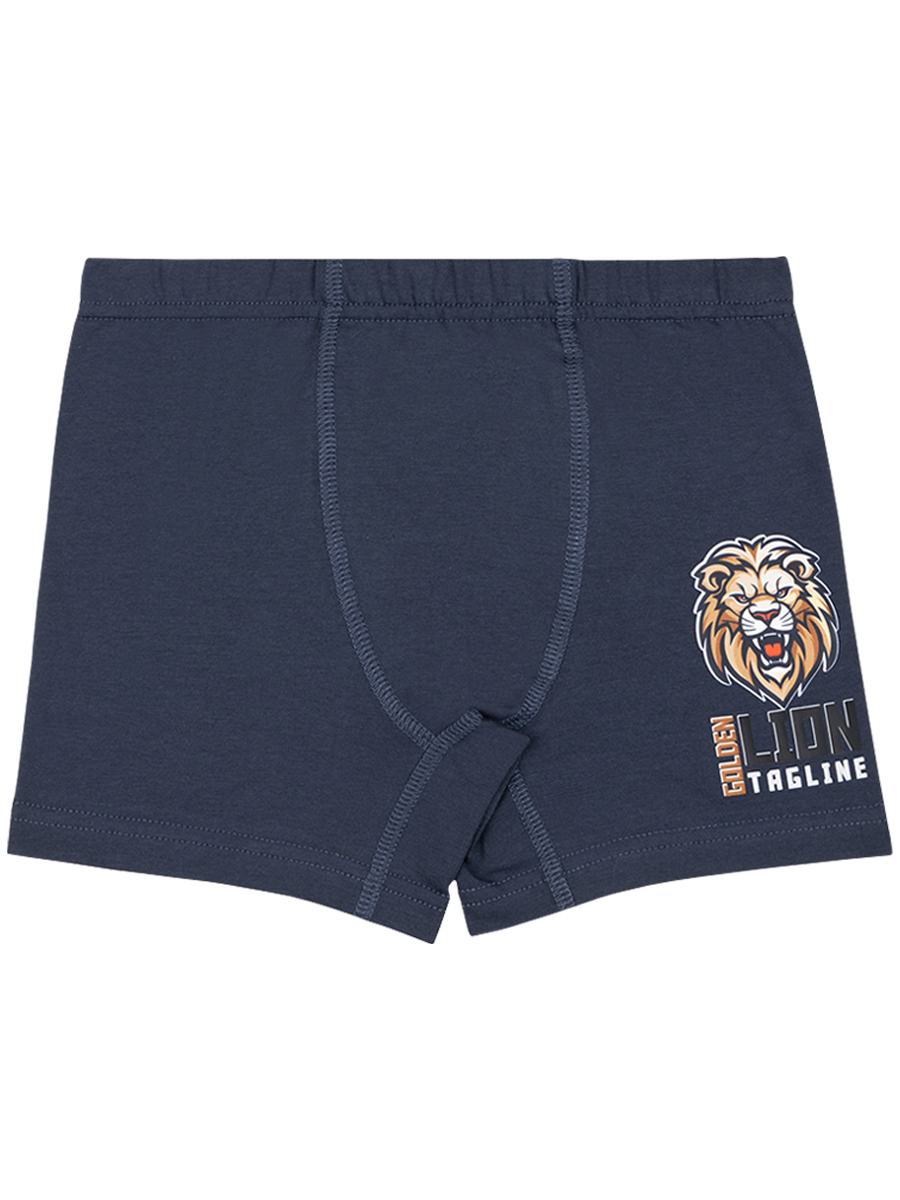 Боксеры для мальчиков, выполненные из эластичного хлопкового трикотажа кулирное полотно. На изделии выполнен яркий принт "Львы". В поясе на закрытой резинке. В проймах обработаны швом вподгибку двойной строчкой.