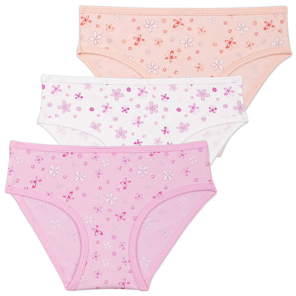 Трусы-слипы для девочки. Выполнены из эластичного х/б трикотажа кулирное полотно. Декорированы мелким принтом "Бабочки и цветочки". В поясе и проймах отделаны эластичным трикотажным кантом. Хлопковая ластовица.
