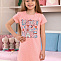 Туника для девочки, из эластичного х/б трикотажа в горошек. Расклешенный силуэт. Горловина отделана трикотажным кантом. На груди красочный принт из надписей.